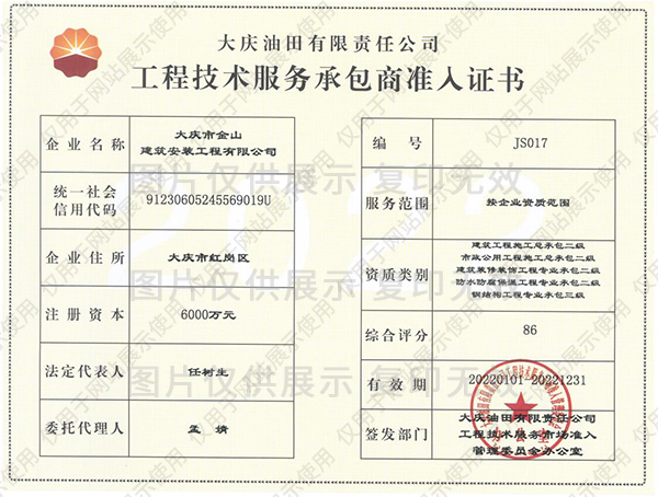 工程技術(shù)服務(wù)合格供方證書
